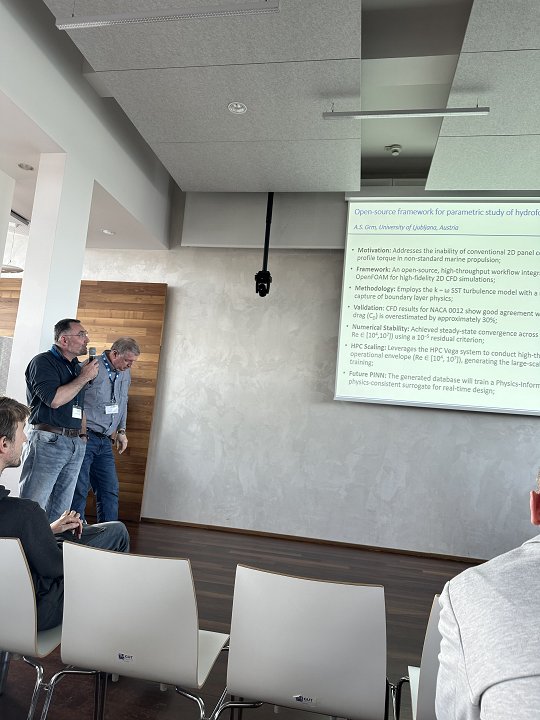 Leon Kos je predstavil delo s področja kvantnega računalništva in digitalnih dvojnikov, David Lajevec raziskave eksaskalnih simulacij, Aleksander Grm pa odprtokodni pristop k preučevanju hidrokril z uporabo metod umetne inteligence.